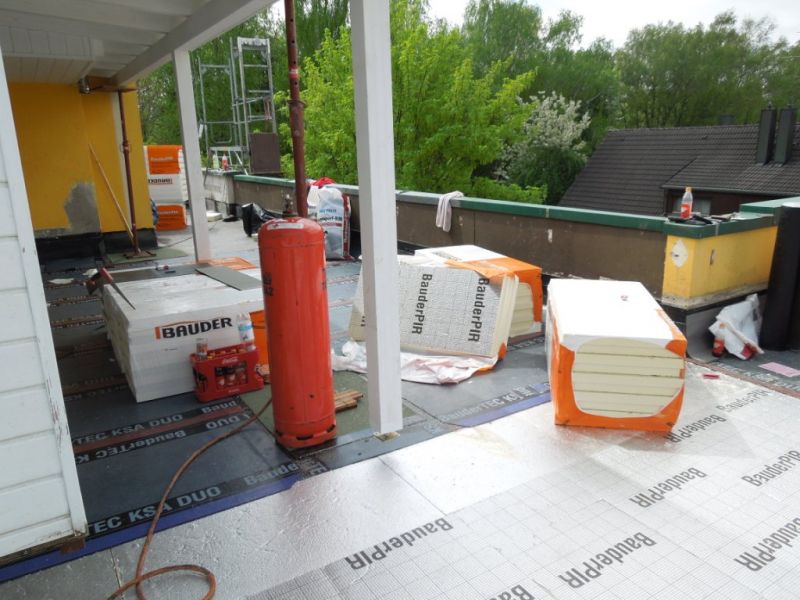 Neu Abdichten und Wärmedämmen einer weitläufigen Dachterrasse für eine Eigentümergemeinschaft in Puchheim vertreten durch die Hausverwaltung Klier in Germering. Die ehemalige, durchnässte Wärmedämmlage wurde komplett entfernt und in eine erhöhte Wärmedämmung neu aufgebaut. Die notwendigen Abdichtungslagen wurde dabei komplett erneuert.