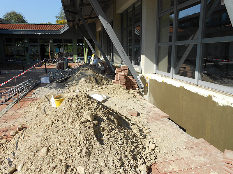 Erneuerung der Beleuchtung durch LED-Beleuchtung: Durch die neue LED-Beleuchtung kann ca. 60% des Beleuchtungsstroms eingespart werden. Die weit verbesserte Ausleuchtung der Arbeitsplätze und die stark verbesserte Akustik wird seit dem Einbau von Lehrern und Kindern sehr geschätzt.