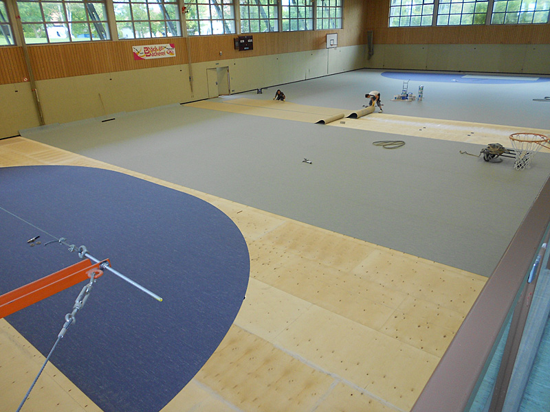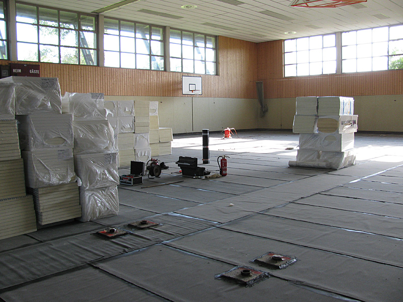 Erneuerung des Hallen-Schwingbodens mit Fußbodenheizung.